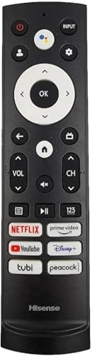 ?Equipped 6 Hot-keys?OEM Replacement Voice Remote Control fits for Hisense UHD 4K ULED Smart Google TVs equipped with 6 Shortcut APP Keys - Netflix, Prime Video, YouTube, Disney Plus, Tubi and Peacock buttons!
