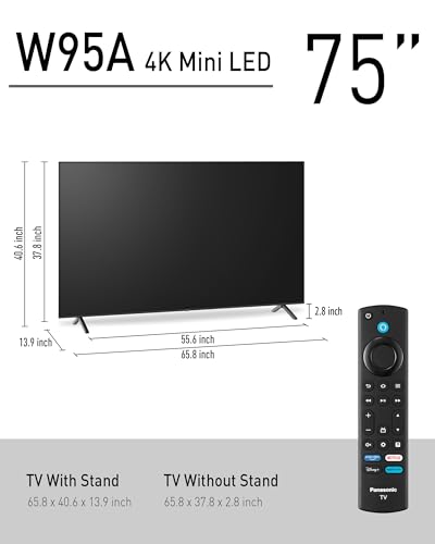 Panasonic W95 Series 75-inch Mini LED 4K Ultra HD Smart Fire TV, Sport Stadium Mode, ATSC3.0, Dolby Vision IQ, Dolby Atmos, HDR10+ Adaptive, Press and Ask Alexa, 144Hz, Wall-mountable - 75W95AP