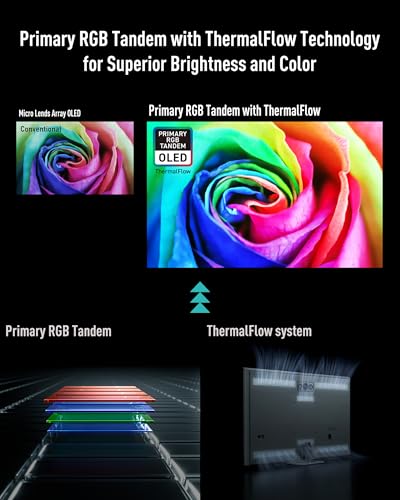 Primary RGB Tandem with ThermalFlow: The new OLED panel with Aaerodynamic ThermaFlow Cooling System significantly Increases brightness and color gamut, delivering stunning brilliant visuals.