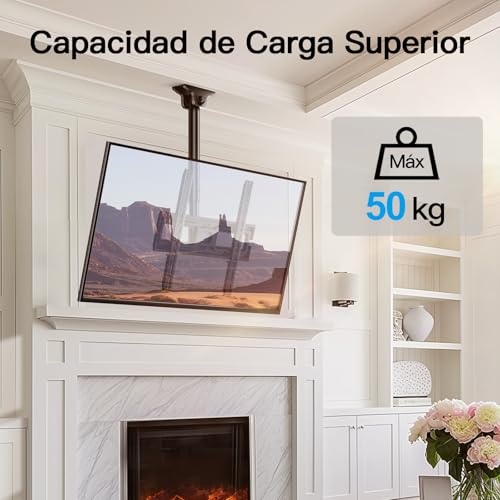 WIDE COMPATIBILITY- This TV ceiling mount fits most 26-65 inch flat screen TVs with VESA 100×100 mm (4"×4") to 400×400 mm (16"×16"), holding up to 110 lbs/50 kg, Please check the TV weight, VESA pattern before purchase. Compatible with wood stud, concrete, and brick wall mounting. Do not install the mount on drywall alone.