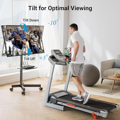 Improve Viewing Experience: This is not only a rolling TV stand but an in-home convenient TV cart. Mobile TV cart features 15° upward angle adjustment functions, so you can adjust the angle of the TV according to your sitting posture, in order to reduce glare and improve the viewing experience.