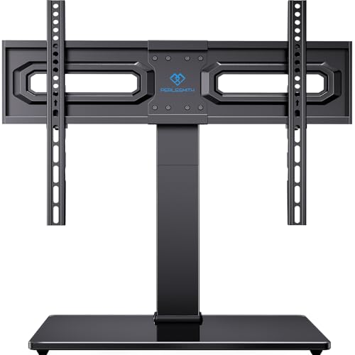 ?Enhance Stability - Tempered Glass Base is 17% Wider Than Others?The tv stand base is made of non-breakable tempered glass and is larger than other tv stand mounts on the market, with 15.75'' length by 11.02'' width, which keeps the TV stable in place. In addition, the safety lock and anti-skid rubber feet ensure the TV is held in table top tv stand, with no worry about tipping over.