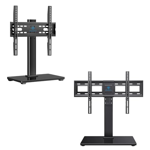 ?9 HEIGHT ADJUSTMENT POSITIONS & INSTALLATION?PERLESMITH universal TV stand makes your life easier. 9 different positions and total 8” of height movement is perfectly for the TV it was needed for. Highest level fits Large TVs and lowest level to keep it from tipping. This tv stand base is also super easy to install within 15 mins without any hassle and comes with a clear instruction.