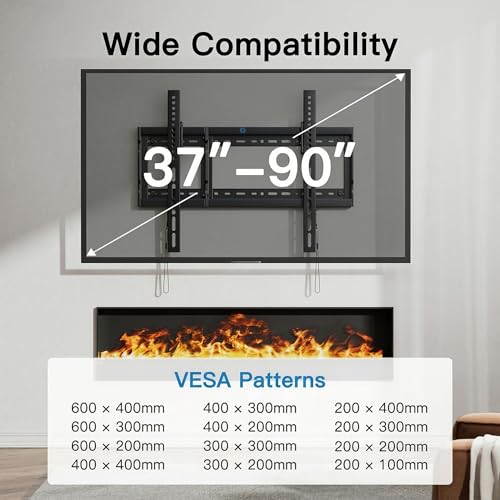 Universal Compatibility - Our ultra strong TV mount fits most 37-85 inch TVs weighing up to 132lbs. Solid and sturdy TV bracket fits VESA patterns from 200x100mm to 600x400mm. Can be mounted on 16" to 24" wood studs walls and concrete/brick walls conveniently. Please check the VESA pattern, weight, size of your TV before purchasing.