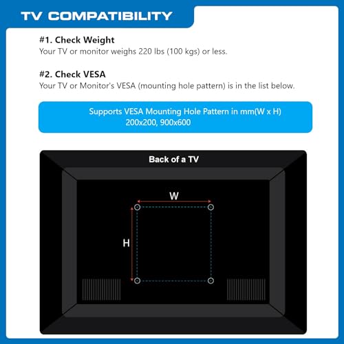 Supports standard mounting hole patterns (VESA) from 200x200 to 900x600
