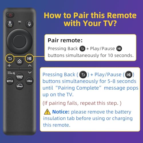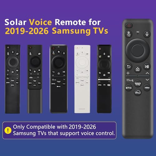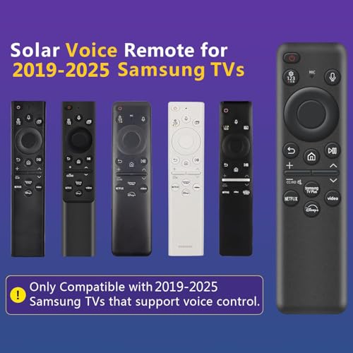 ?Compatibility? Designed for Samsung Smart TVs from 2019 to 2025, this rechargeable voice remote is a seamless substitute. ?Important Notice?This remote is compatible with All 2019–2025 Samsung TVs that support voice control. For Samsung TVs that do not support voice control or were released before 2019, the voice control feature on this remote may not function.
