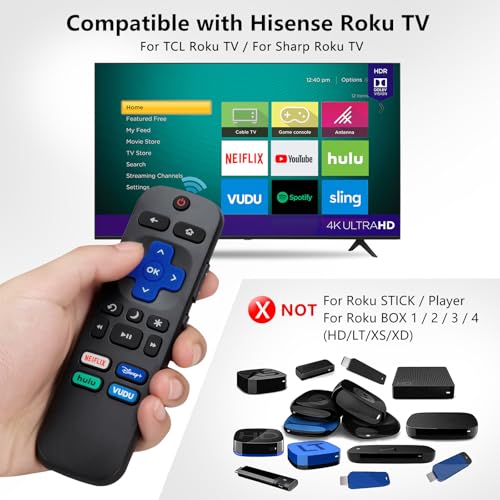 ?COMPATIBILITY?This remote compatible for Hisense Roku TV, for TCL Roku TV, for Sharp Roku TV, for Onn Roku TV, for Philips Roku TV, for Westinghouse Roku TV, for Eement Roku TV, for Insignia Roku TV, for Jvc Roku TV, for RCA Roku TV, for Sanyo Roku TV ALL Models. Not for Roku Streaming Media Players, Not for Roku Express, Express +, Not for Roku Streaming Stick, Stick+, Not for Roku Premiere, Premiere+, Not for Roku Ultra, Roku Box 1, 2, 3, 4