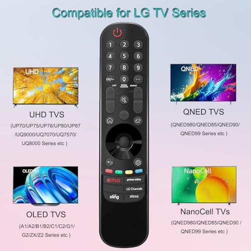 Compatible with LG TV series models ?2021 2022 2023 2024 OLED TV's G1,G2,G3,G4 C1, C2,C3,C4,A1 A2 A3 A4 series, 2021 2022 2023 2024 QNED Mini-LED TV's QNED99, QNED90 series, 2021 2022 2023 2024 NanoCell TV's NANO99, NANO90, NANO85, NANO80, NANO75 series, 2021 2022 2023 2024 UHD TV's UP80, UP75 series.