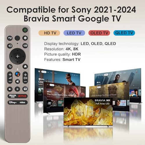 (Compatible ) for Sony RMF-TX800U/810U/811U/820U, RMF-TX900U/910U/920U, RMF-TX520U/500U, RMF-TX600U/611U/621U, and RMF-TX300U/310U.Compatible with 2018-2025 for Sony Bravia TVs: XBR/XR/KD/KDL, 4K UHD, OLED, and Crystal HDR.