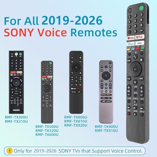 ?Broad Compatibility?this high-end remote is designed for All 2019-2025 SONY TVs. It serves as an excellent replacement for various SONY voice remote controls such as RMF-TX520U/500U, RMF-TX800U/810U/811U/820U, RMF-TX900U/910U/920U, RMF-TX300/310U, RMF-TX600U/611U/621U and others.