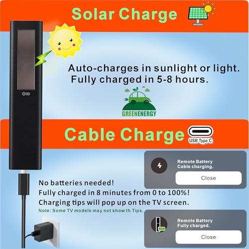 ?Military-Grade Durability?: ABS material made: Survives 6.5 ft drops. 100,000+ Click Lifespan: Rated for 9+ years of daily use. 40ft Bluetooth Range: Controls TV from any angle (walls/no obstacles). ?Zero-Waste Mission?: Saves 200M+ batteries from landfills by 2030. ?Supercapacitor-boosted battery?: Immune to drain damage, survives heavy use. Charges 5 mins for full power, even after long-term depletion. Outlasts standard/OEM batteries.
