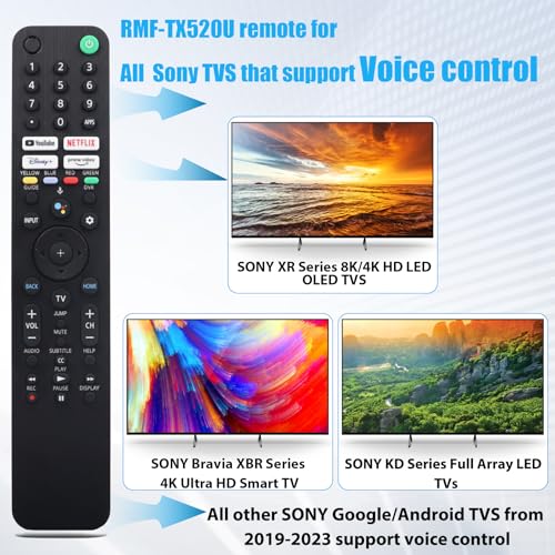 Replacement for sony RMF-TX520U remote is designed for all sony tv with voice commands?2019-2023??Including the SONY BRAVIA XBR/XR/KD series?KD-43X80J KD-43X85J KD-50X80J KD-55X80CJ KD-65X79J KD75X81J KD85X91J XR-50X90J XR-50X94J XR-55A80J XR-55A84J XR-55A90J and more. Note: If your TV is from before 2018, then this remote should not be suitable. In addition, this remote control can not control the TV box