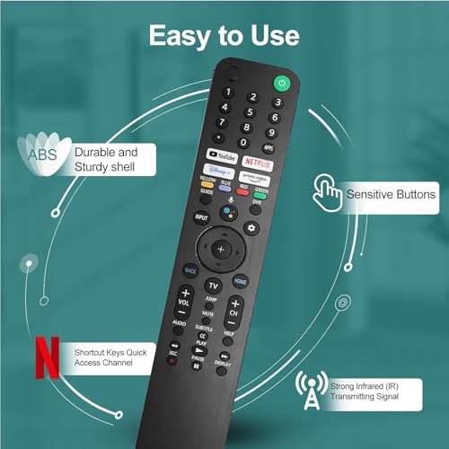 [Product Features] Sony tv remote are good replacement for TV which connected your device through infrared technology. Lightweight and ergonomic design. Also with a longer distances transmitting ( >12m/40ft). universal remote for smart TVs supports faster transmission speeds. Fastest response not over 0.2 second to launch to your TV. This -smart-tv-remote control had also been successfully tested to click the buttons highly over 120,000 clicks.