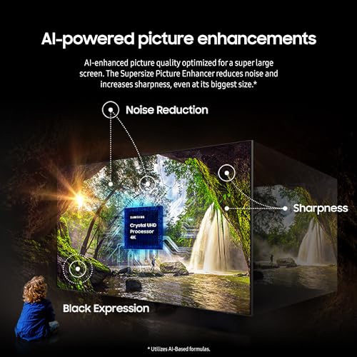 SUPERSIZE PICTURE ENHANCER: AI-enhanced picture quality optimized for a super large screen; The Supersize Picture Enhancer reduces noise and increases sharpness even at its largest size, so you get a picture that’s as bold as it is big¹