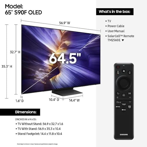 Samsung QN65S90F 65 inch Class OLED 4K S90F Vision AI Smart TV (2025)