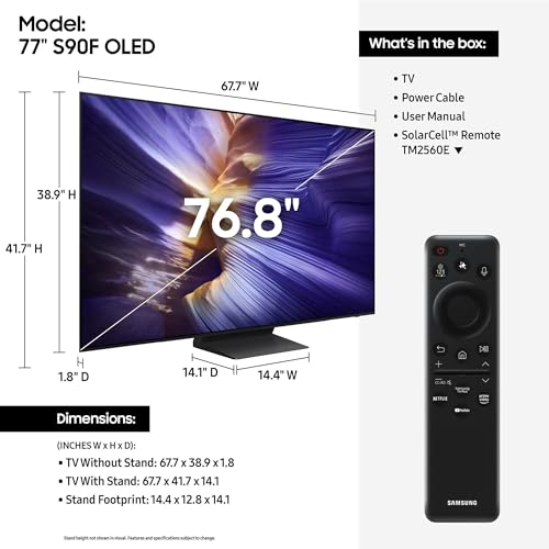 This Bundle Includes: Samsung QN77S90FAFXZA 77" 4K OLED Smart TV with Dolby Atmos (2025) | 1 Year Amber Protection in Addition to the Included Full 1 Year Manufacturer's Warranty. Intended for Residential Use Only. Exclusively Offered by Walt's TV | Amber Protection HDTV Screen Cleaner Kit