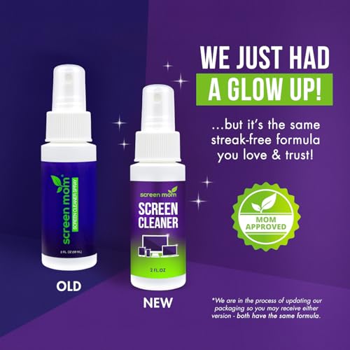 VERSATILE CLEANER FOR ALL SCREEN TYPES: Our Screen Mom screen cleaner kit is designed to work on a wide range of screens, including HDTVs, LED, LCD, OLEDs, car displays, and even sensitive smartphone displays. Our screen cleaner spray with microfiber delivers professional-grade results on every surface. Clean your entire collection with ease, knowing this formula safely tackles fingerprints and smudges without damage on laptops, tablets, and computer monitors.