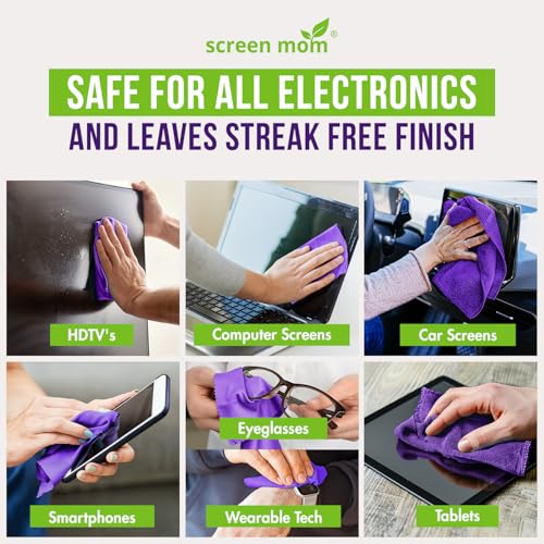 STREAK-FREE FORMULA FOR CRYSTAL-CLEAR SCREENS: This bundle includes Screen Mom’s TV cleaner spray and cloth advanced streak-free screen cleaner formula in both 8oz and 2oz bottles, keeping screens of all sizes smudge-free and clear. Each computer screen cleaner spray and wipe removes fingerprints without leaving any residue, giving you spotless screens every time. Designed for easy, everyday use on TVs, laptops, tablets, phones, and more.
