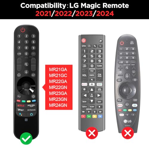 ?Perfect Fit?Silicone protective cover is specially designed for lg smart tv magic remotes of LG MR21GA / LG MR21GC (2021), LG MR22GA / LG MR22GN (2022), LG MR23GA / LG MR23GN (2023), LG MR24GA / LG MR24GN (2024).?NOTE: REMOTE CONTROL NOT INCLUDED?