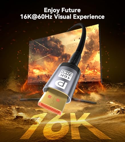 Broad & Universal Compatibility for All Your Devices: Sniokco DisplayPort Cable 2.1 supports 16K@60Hz and works with all DisplayPort devices. This DP cable is compatible with Nvidia RTX 3070/3080/3090/4080Ti/4090/5090 and AMD RX 6800 XT/6900 XT/7900 XT. Perfect DisplayPort cable for gaming monitors like Odyssey G8/G9, BenQ, Alienware, LG Ultragear, and more. Supports DP, DP++ modes and backward compatible with DisplayPort 2.0, 1.4, 1.3, and 1.2. Ideal for any DisplayPort cable 2.1 setup.