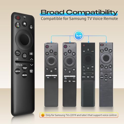 ?Wide Compatibility?Compatible with 2021–2026 Samsung Smart TVs, this premium voice remote control is an ideal replacement for samsung tv remotes, featuring solar charging, USB-C charging, and a built-in rechargeable battery. Note: for Samsung Vision Al Button is only available on 2025 Neo QLED 8K, Neo QLED, OLED, QLED and The Frame TV models. Samsung Vision Al features vary by TV model.