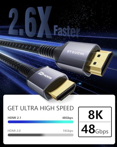 [ 8K Ultra HD Resolution ] HDMI 2.1 cable adheres to the latest HDMI 2.1a specification, supporting high-resolution formats like 10K@30Hz, 8K@60Hz, 4K@120Hz, and 2K@144Hz. Note: 10K@30Hz 8K@60Hz needs HDMI Source and Display support DSC( Display Stream Compression ) according to HDMI 2.1 Spec