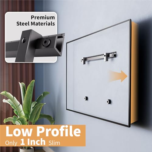 Studless TV Mount : Wall studs not required for installation, avoid the hassle of finding studs, It extends only 1.2 inch clearance from the wall for no gap and a clean appearance and can tilt up to +5 degrees