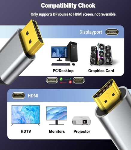 Widely compatible:For graphics cards or GPUs that support DP,DP++,DisplayPort++,Perfect for graphics card (AMD,NVIDIA),laptops (HP,Lenovo),desktops (HP,Dell,Lenovo),Note:Hubs,docking stations or KVM switches are not supported.docking stations or KVM switches are not supported