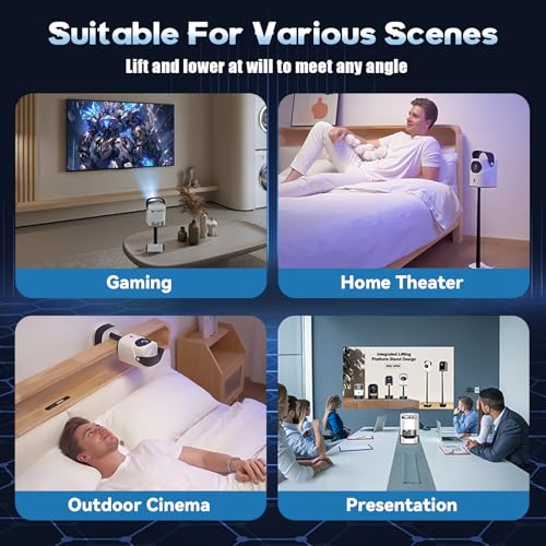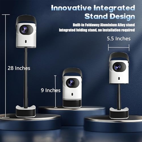 ?Portable Integrated Folding Stand Design?This wall Projector features an innovative integrated foldable stand design with a built - in collapsible aluminum alloy stand.Adjustable Height from 9 inch to 28 inch,it eliminates the need for complex installation processes,you can choose the appropriate height according to the position you want to project. Moreover, it can be wall - mounted for a more flexible viewing experience.When not in use, it can be easily folded up, saving space and portable for home and office, gym workout, outdoors, camping, trips and anywhere need