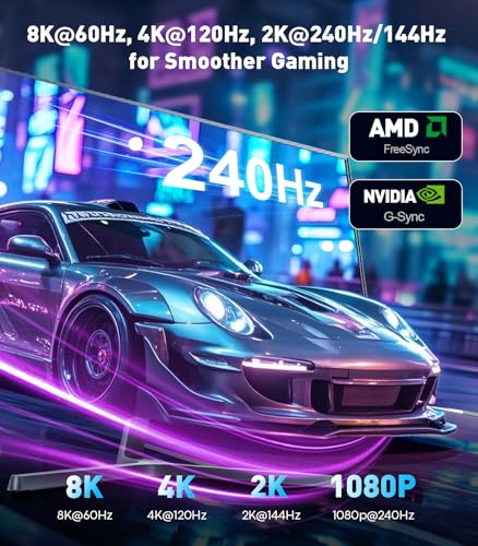 ????Ultra HD Resolution Support: This DisplayPort 1.4 to HDMI 2.1 cable supports 8K@60Hz extreme picture quality output and is backward compatible with 4K@120Hz/60Hz, 2K@240Hz/144Hz/120Hz/60Hz and other high-brush resolutions, which meets the needs of professional gaming, 8K video editing and UHD film and TV. Lossless transmission is achieved through the synergy of DP 1.4's HBR3 bandwidth (32.4Gbps) and HDMI 2.1.