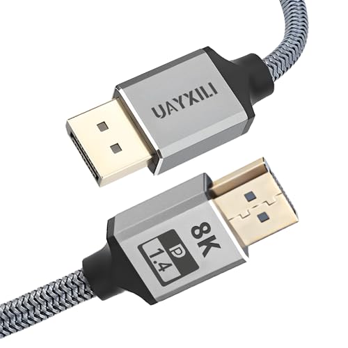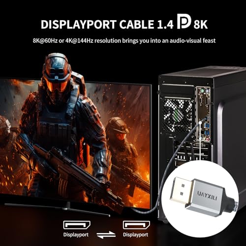 DURABLE DESIGN: UAYXILI Display Port cable 2.1 is made of 99.99% OFC with triple shielding, ensuring stable signal transmission, 24K gold-plated ports, latch-free and military-grade tensile cotton can ensure that this 8K Display Port cable withstand up to 25,000 flex times and accurately transmits signals, greatly extending use life