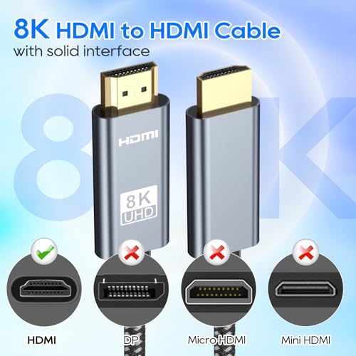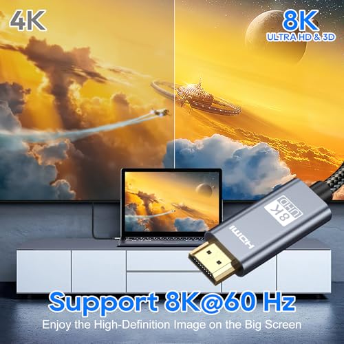HDMI Cable 8K: HDMI cord embrace the pinnacle of visual fidelity with support for 8K@60Hz and 4K@120Hz. Our HDMI cord is engineered to deliver the sharp images, making them the perfect conduit for your journey into the world of ultra-high-definition content