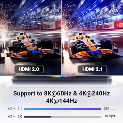 48Gbps Super High Speed: This HDMI 2.1 cable supports up to 48Gbps bandwidth, much faster than HDMI 2.0 and HDMI 1.4.