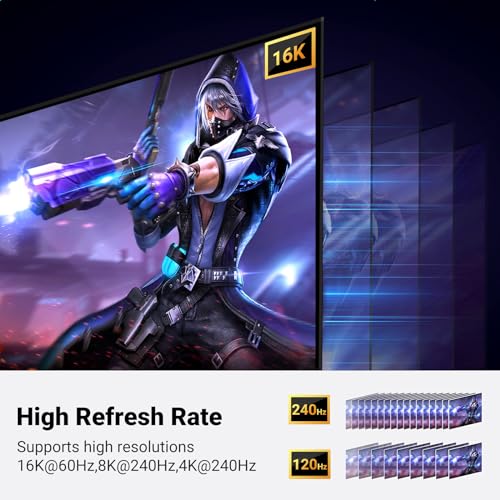Cutting Edge 16K DisplayPort Cable: UGREEN16K DisplayPort cable 2.1 supports high resolutions 16K@60Hz, 8K@240Hz, 4K@240Hz. And backward compatible with Display Port 1.4 1.3, 1.2. Single-screen video output of 16K@60Hz (DSC 1.2a), and dual-screen supported. The DP to DP cable also supports HDR, HDCP 2.2, FEC forward error correction and UHBR10 which guarantee your immersive viewing experience. (Note: 20-pin is disabled with no power. No need to worry about the 20-pin issues.)