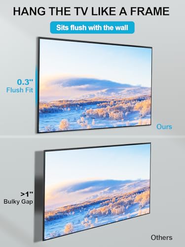 Simplicity Meets the Slimmest Design: The slimmest low profile TV wall mount (0.3")—70% thinner than standard mounts (1"). Your TV sits almost flush, creating a picture-like display that blends into your space. No gaps, just minimalist elegance.(Only for TV with flat back, not for TV with uneven back or no holes),