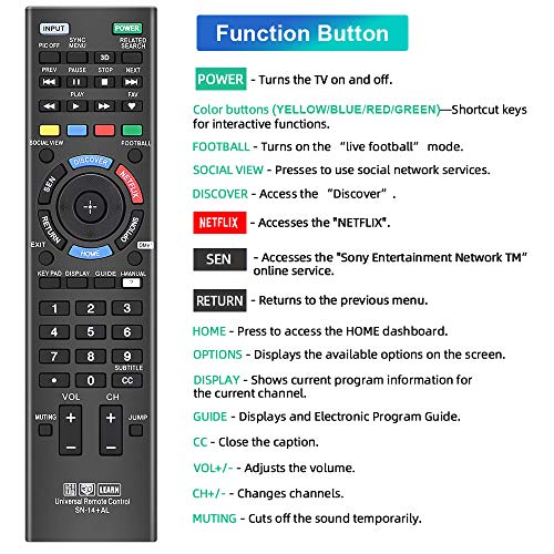 FEATURES – The replacement for Sony Smart TV remote transmits a signal over long distances (>10m/33inch) and is 100% identical to the original remote, making it an ideal choice for when your remote needs to be replaced.