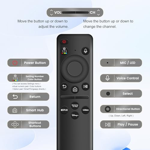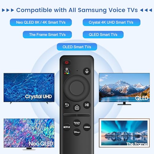 Compatible Devices: This universal replacement remote works with 2019–2025 voice-control-enabled Samsung TVs, including Frame, Crystal 4K UHD, Neo QLED 4K/8K, OLED and QLED Smart TVs