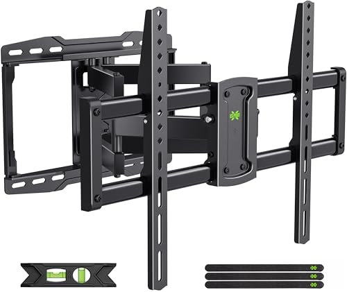 Saving Space: This dual arm mount Swivel and tilt with 6 arms that can pull out to 16.61"or retract back to 2.52" from the wall. Manage TV cables orderly through the velcros, which save valuable space for you and make your house look neat.