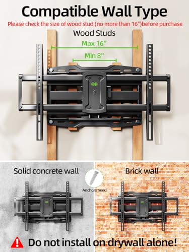 Easy Installation: The stud mount includes bubble level, mounting template, all included hardware in pre-labeled bags for easier and quicker installation. In particular, if your stud is for 16'' wood studs, please screw the bolts into the outermost edge of the holes on both side wall plates of the bracket to ensure compatibility with 16'' wood studs. Warm tips: If you need 10X50mm concrete anchors, please let us know to get it.