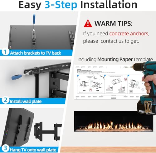 Saving Space: Dual articulation arm design ensures reliable strength, this articulating tv bracket can retract 2.69 inch from the wall in home position to save space and also extends up to a maximum 16.79 inch from the wall