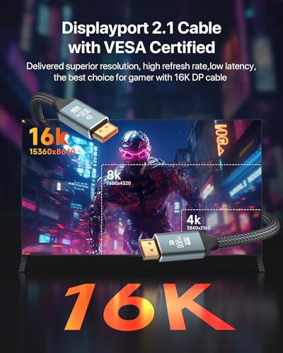 ?Best Companion For Gaming Enthusiasts?Equipped with a wide bandwidth of 80Gbps HBR20 high-speed transmission and up to 16K@60Hz resolution and high refresh rate, this DP to DP 2.1 cable beyond the ordinary version DP 1.4.Easier to connect multiple monitors with Multi-Stream Transport (MST). Variable refresh rate (VRR) and auto low latency mode (ALLM) brings you a smooth and lag-free visual experience especially in FPS, 3A and MOBA games.Whether you're watching HD movies or playing games against each other,this cable the best choice for you.