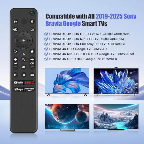 ?Compatible TV Models?This Soni Remote Control for Smart TV is the perfect Soni Bravia remote replacement for your Soni Bravia Google Smart TV, including models such as BRAVIA 3, BRAVIA 7, BRAVIA 8, BRAVIA 9, X90L, X90CL, X93L, X93CL, X95L, A75L, A80L, A80CL, A95L, etc