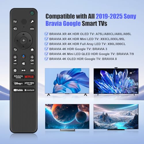?Compatible TV Models?This Soni Remote Control for Smart TV is the perfect Soni Bravia remote replacement for your Soni Bravia Google Smart TV, including models such as BRAVIA 3, BRAVIA 7, BRAVIA 8, BRAVIA 9, X90L, X90CL, X93L, X93CL, X95L, A75L, A80L, A80CL, A95L, etc