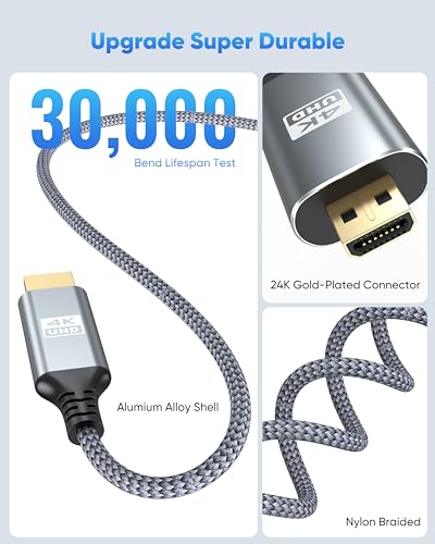 ?Bi-directional Efficient Transmission?Micro HDMI to HDMI cable 6ft support bi-directional transmission (Micro HDMI to HDMI or HDMI to Micro HDMI). HDMI 2.0 high-speed 18gbps stream audio and video from a camera, tablet through the Micro HDMI Port to Laptop, HDTV, Monitor or projector with HDMI port. 24K gold-plated connectors, 30AWG pure copper wire with excellent conductivity and corrosion resistance. Combined with the advanced aluminium casing and triple shielding, it can effectively resist EMI interference to ensure stable signal transmission