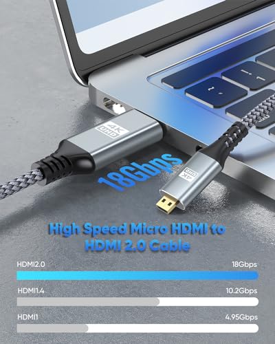 ?UHD 4K@60Hz Micro HDMI Cable?Enjoy a HDR visual feast with latest hdmi to micro hdmi cable that supports up to 4K@60Hz(3840x2160) Ultra HD resolution and is backward compatible with 2K@165Hz and 1080P Full HD. Equipped with 3D technology, Audio Return Channel (ARC) and transmission speeds of up to 18Gbps, it delivers a smooth and clear viewing experience that makes you feel like you're there